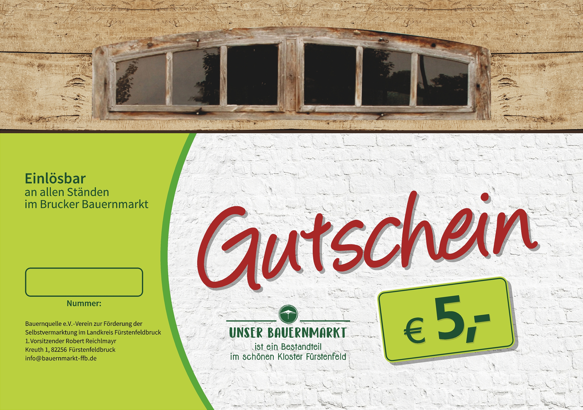 Keine passende Geschenkidee? Dann haben wir die Lösung für Sie! Ein Geschenkgutschein vom Brucker Bauernmarkt! Unsere Gutscheine können an allen Ständen im Brucker Bauernmarkt eingelöst werden und bieten somit einen facettenreichen Einsatz. Ganz egal, ob dieser zum Frühstücken verwendet wird oder der nächste Einkauf bei uns erfolgt. Der Erwerb von Gutscheinen ist gegen Barzahlung am Stand von Traudl´s Backservice möglich.