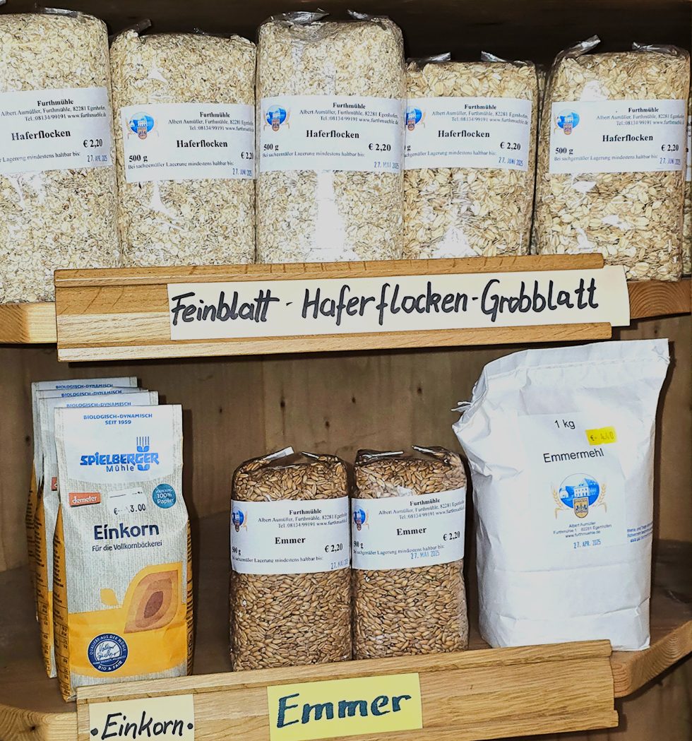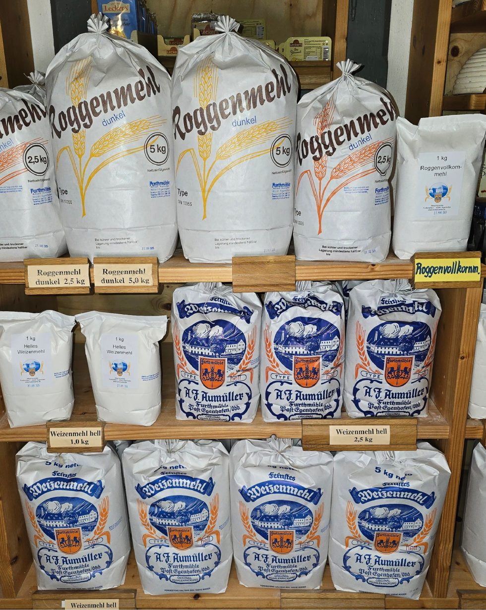 Vermahlungsprodukte aus Weizen, Dinkel, Roggen und Emmer wie Mehl, Vollkornmehl, Dunst & Gries, Getreide, Backzutaten, Geschenkkörbe, Gewürze sowie Naturkostwaren